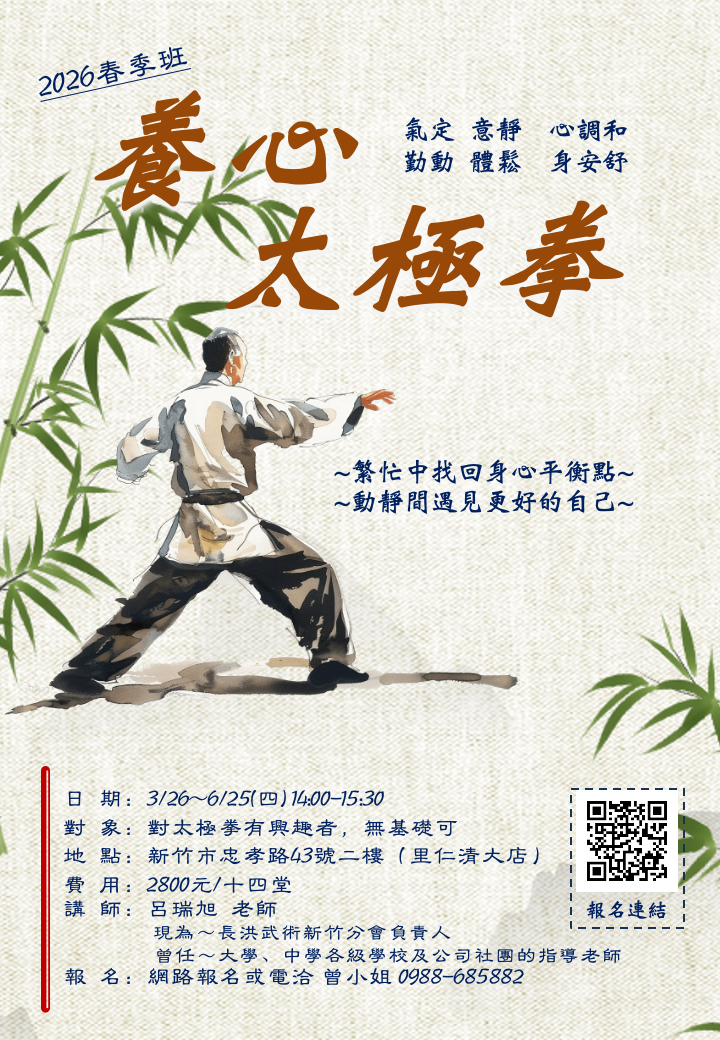透過太極拳的練習,慢慢調整呼吸、舒展身體、沉澱心緒