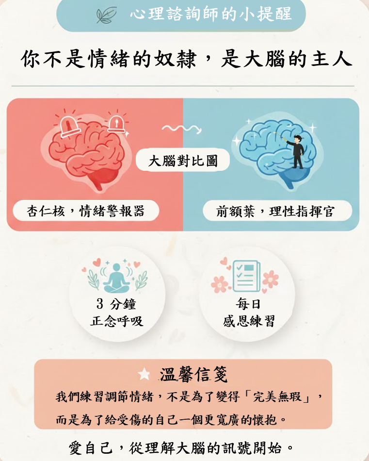 心理師小提醒:當情緒失控時,是因為警報器響得太吵,指揮官聽不見聲音。